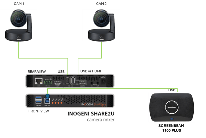 How to Set Up ScreenBeam 1100 Plus Wireless Conferencing with Dual UC Cameras Using Inogeni Share2U