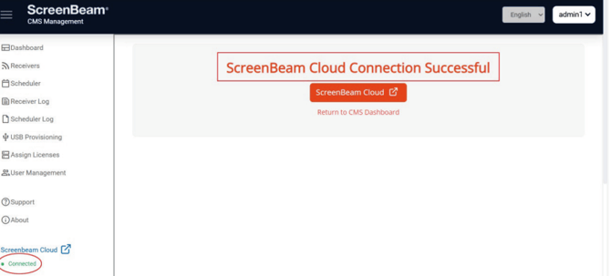 - Verify CMS Enterprise is connected to ScreenBeam Cloud.